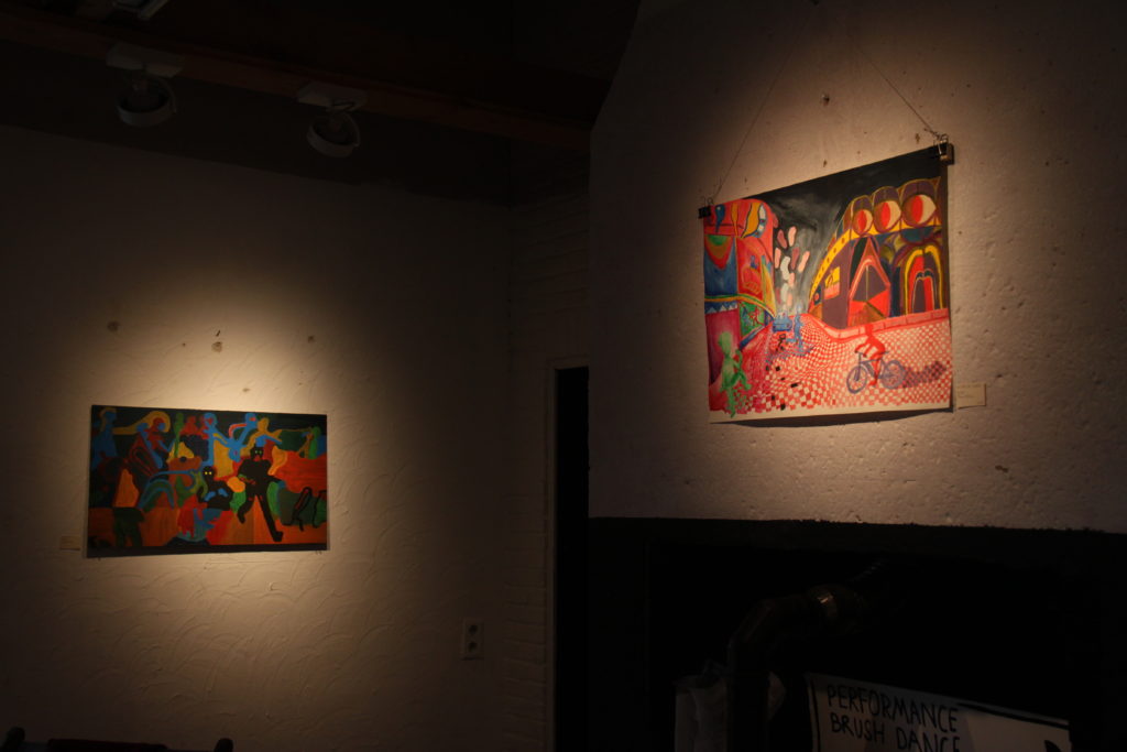 Exposition de presque toutes les oeuvres au première étage avec la performance et le concert au grenier. Une deuxième soirée arT-otal rempli de belle énergie