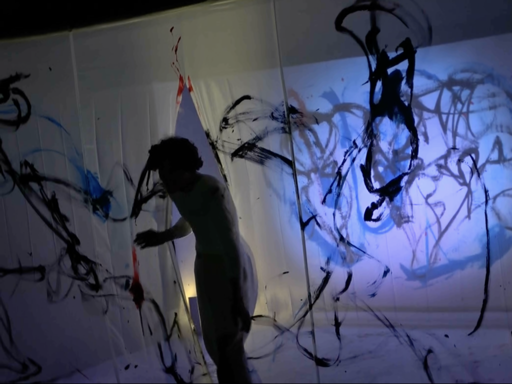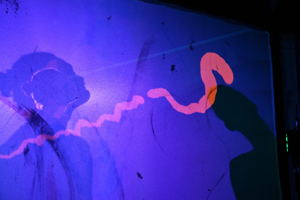 This performance emerged from a collaboration with Youri, a digital artist working with tablet drawing and live projection, and Axel, a photographer capturing this immersive