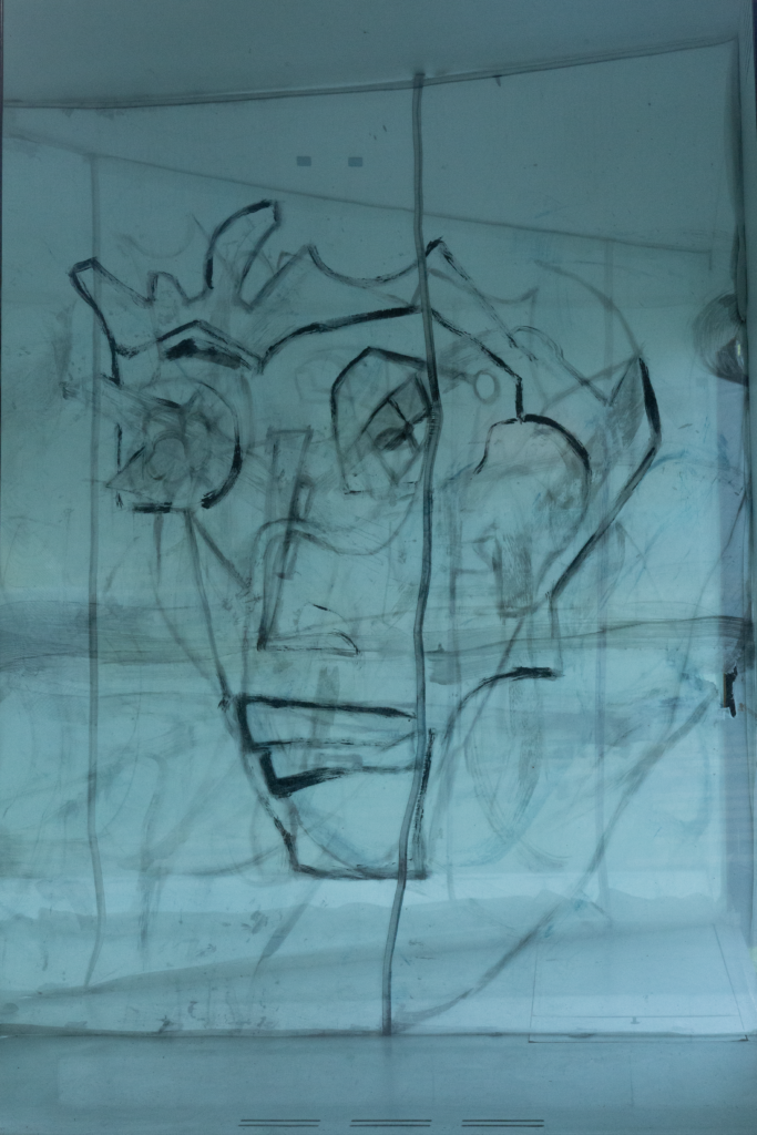 In this exhibition, the trace becomes a shockwave, the imprint of a crash transformed into a face. The work carries the memory of gestures from