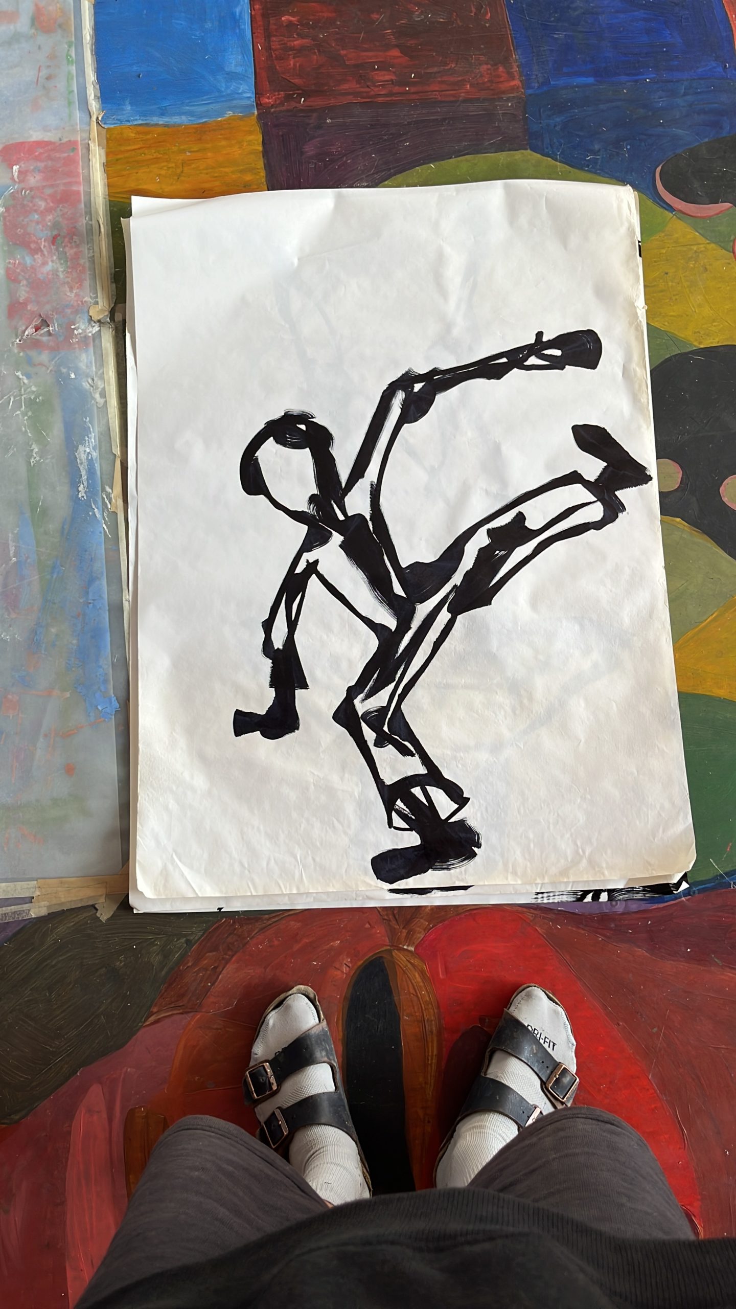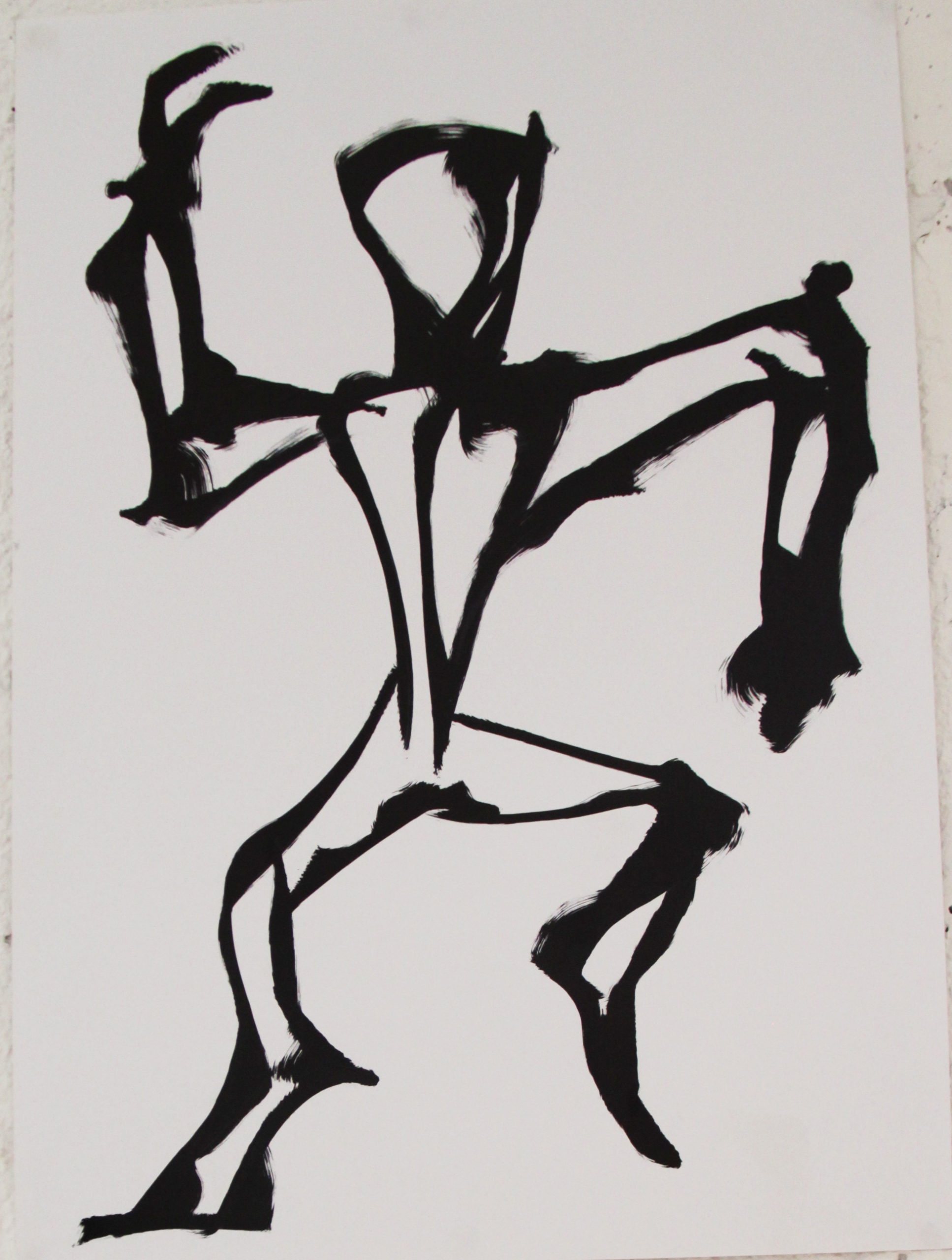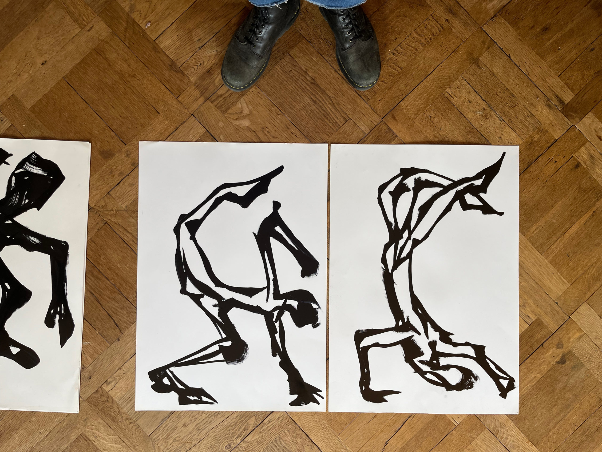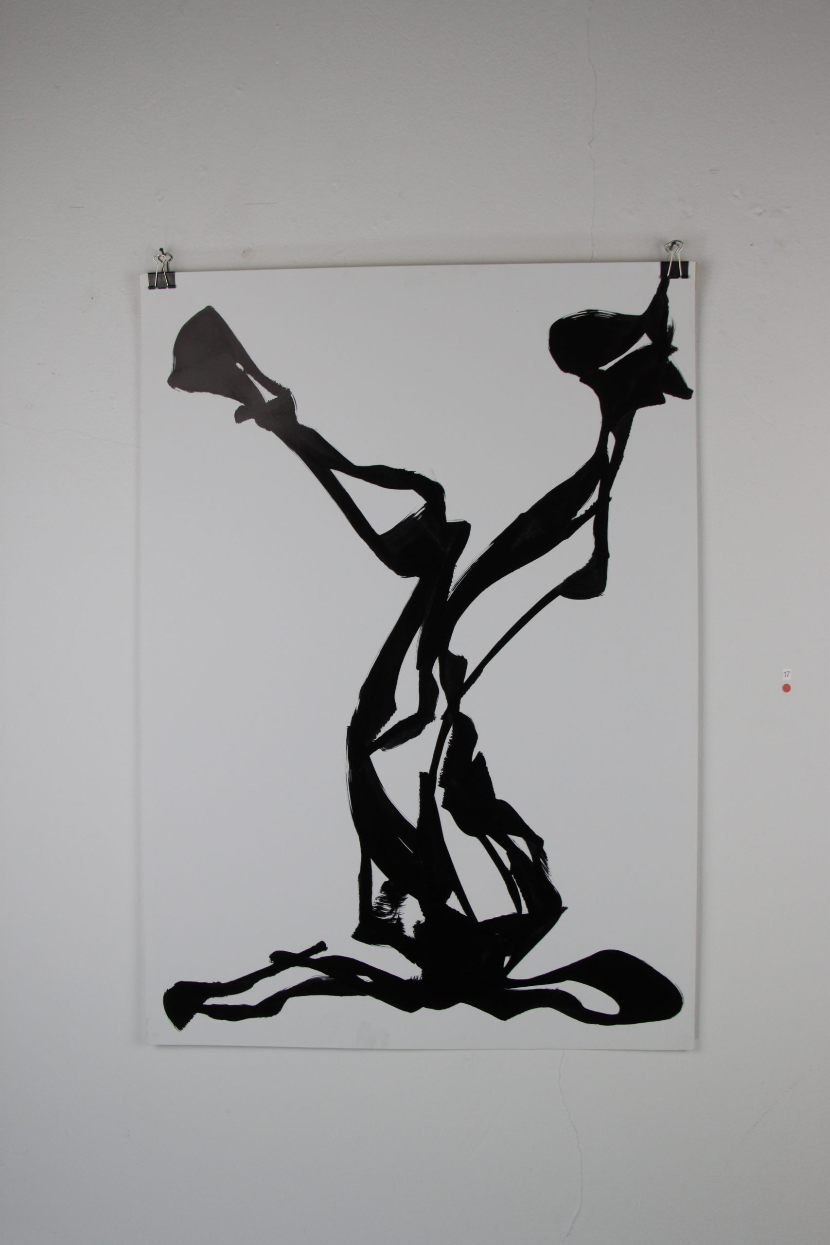 This same momentum is then extended to other media, such as paper or wood. The gesture retains its fluidity and intensity, capturing the energy of a moment rather than the form of a frozen movement. Whether observed or not, the dancing body remains an autonomous act, free from any external constraints, where the trace left behind becomes the memory of the movement.