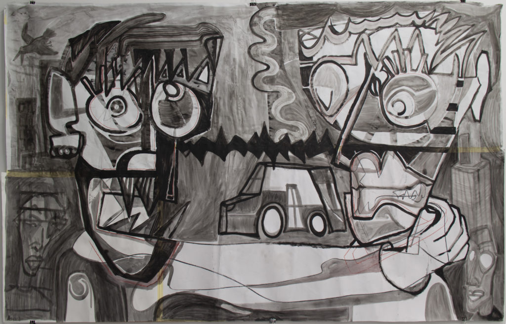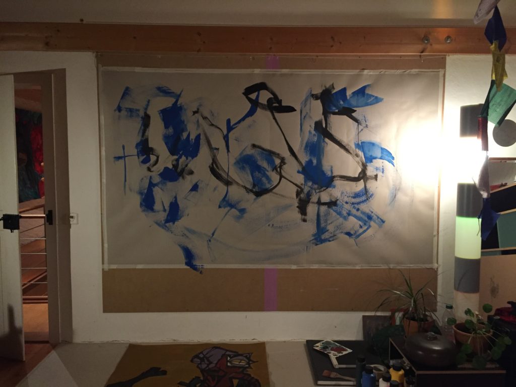 Emerging dialogue from a foundation of performance between myself and the universe in which I exist. I then crystallize these dialogues by deepening them through the basis of my live painting.