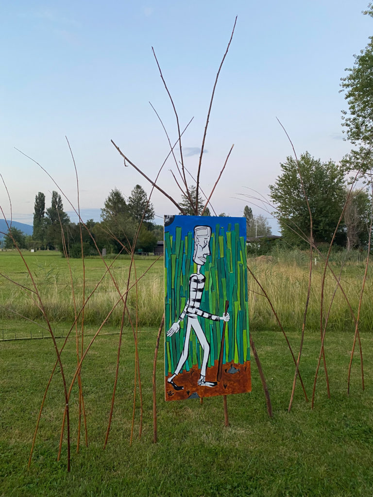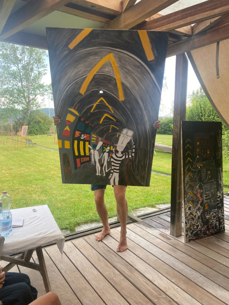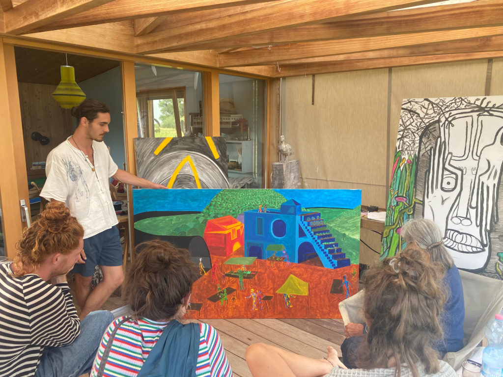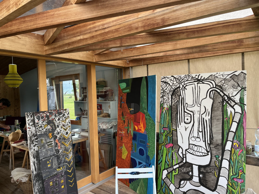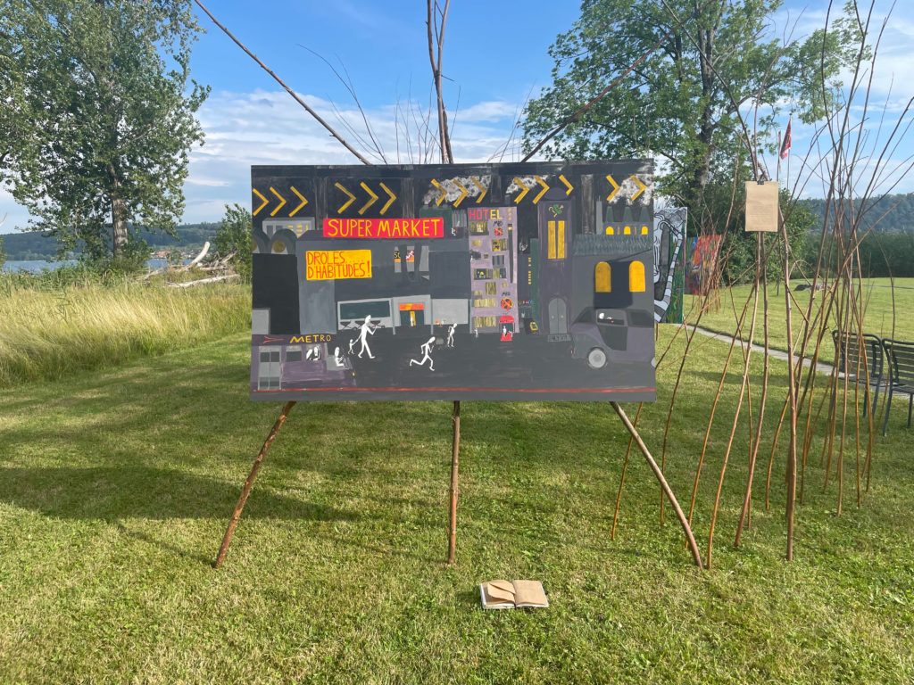 The second year transformed this research into concrete and positive action: participating in a cooperative in the Jura, and creating an installation on Saint-Pierre Island composed of twelve paintings accompanied by texts, offering an immersive and hopeful narrative, demonstrating that well-rooted sustainable alternatives already exist.