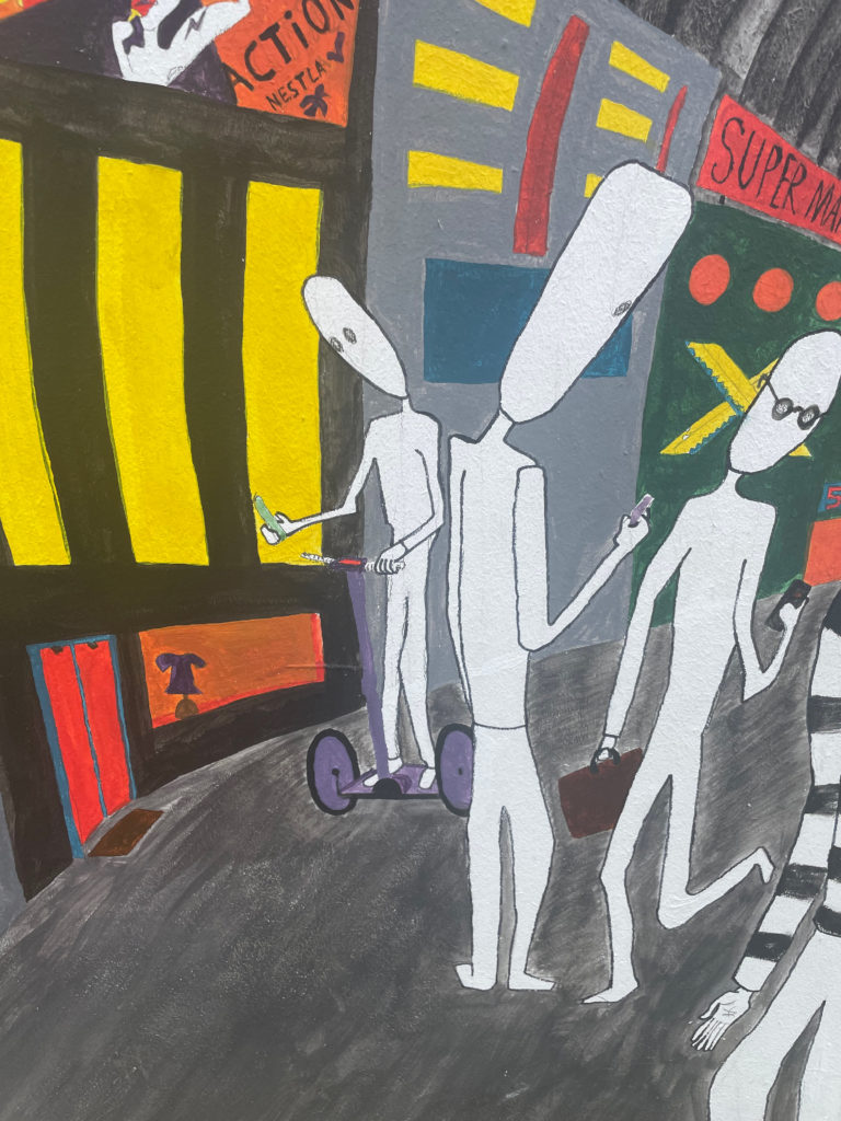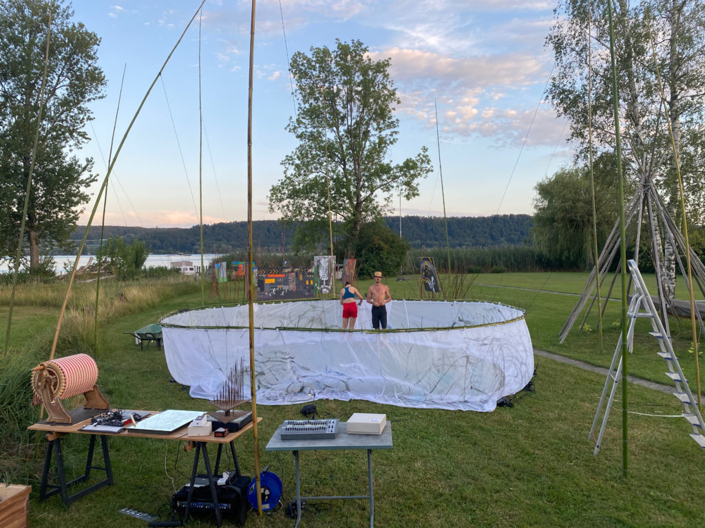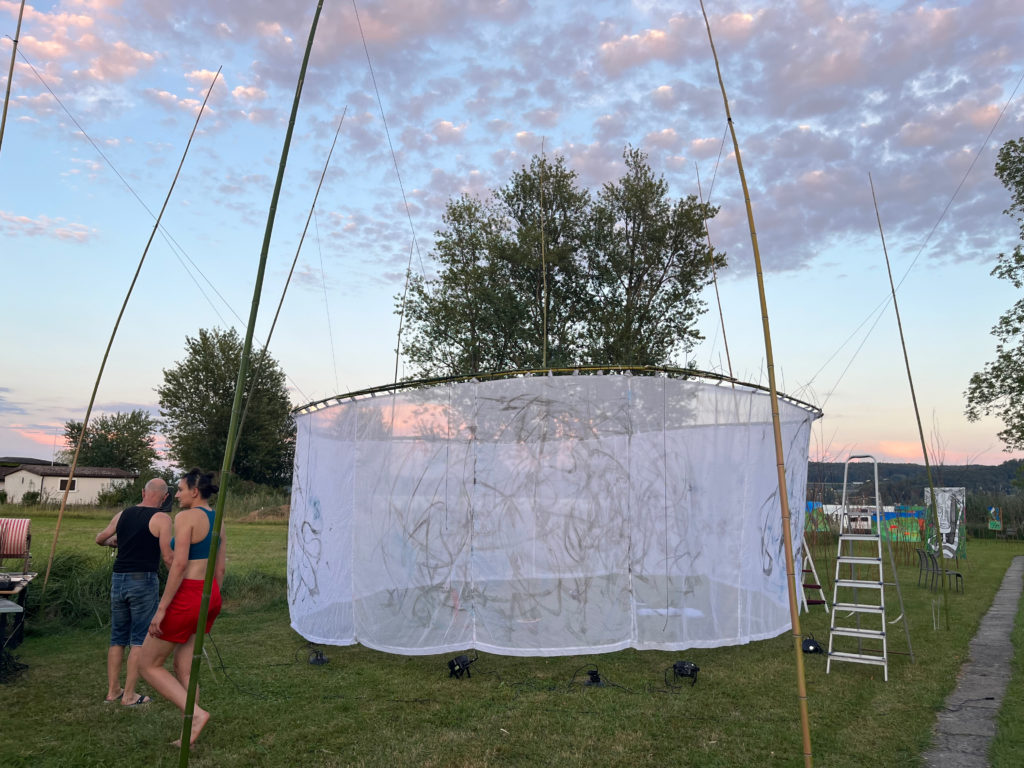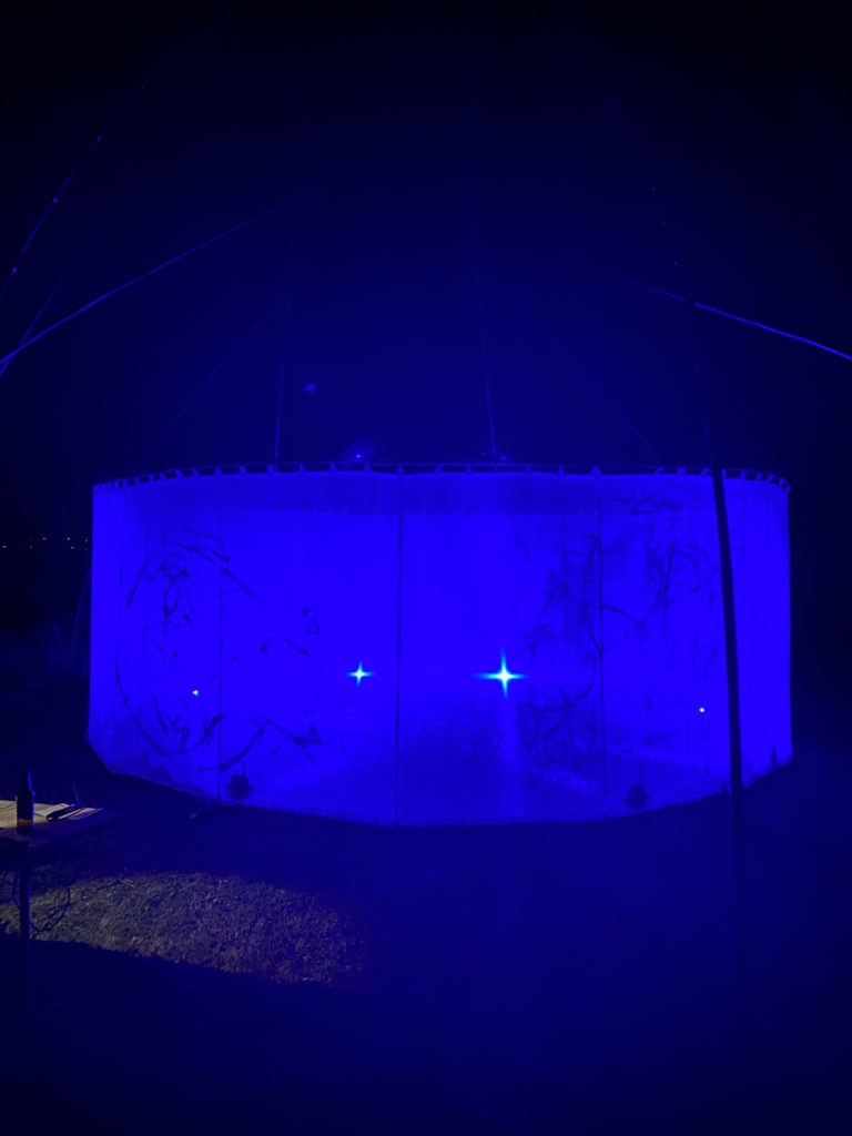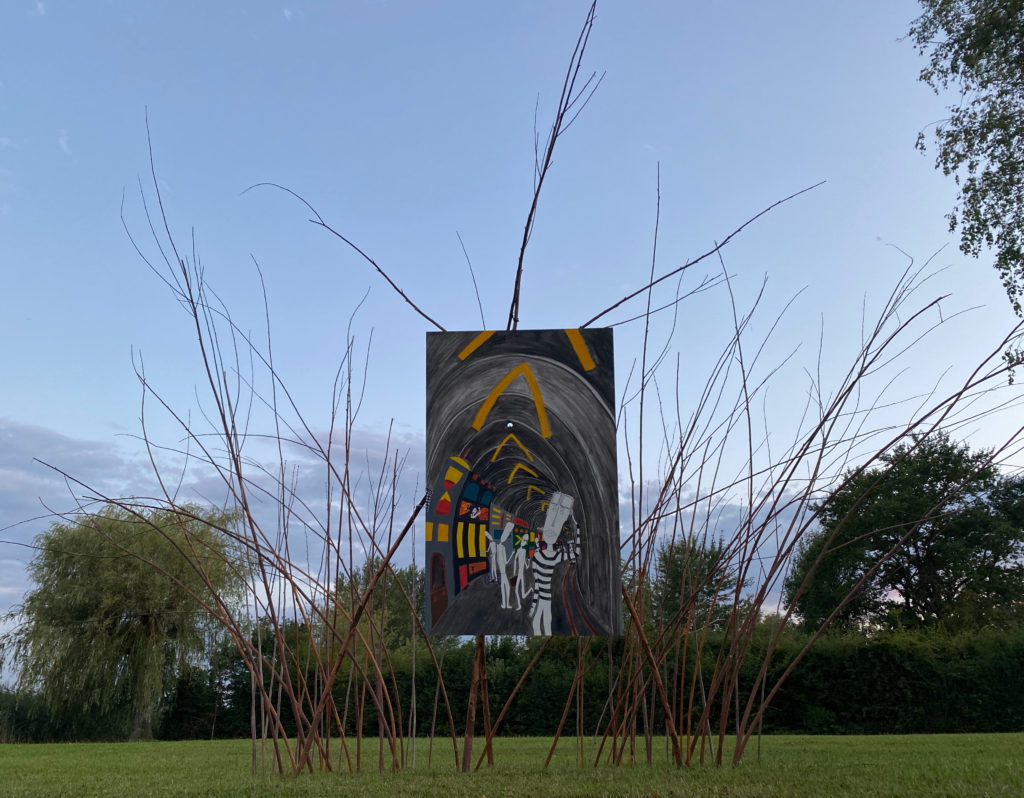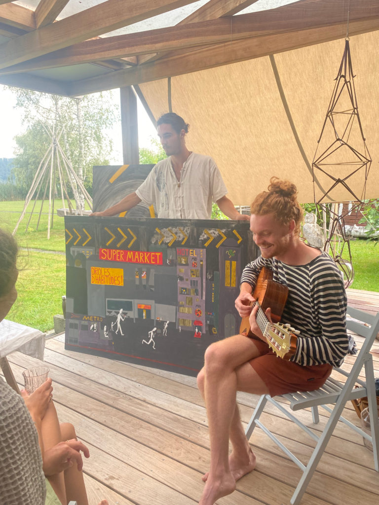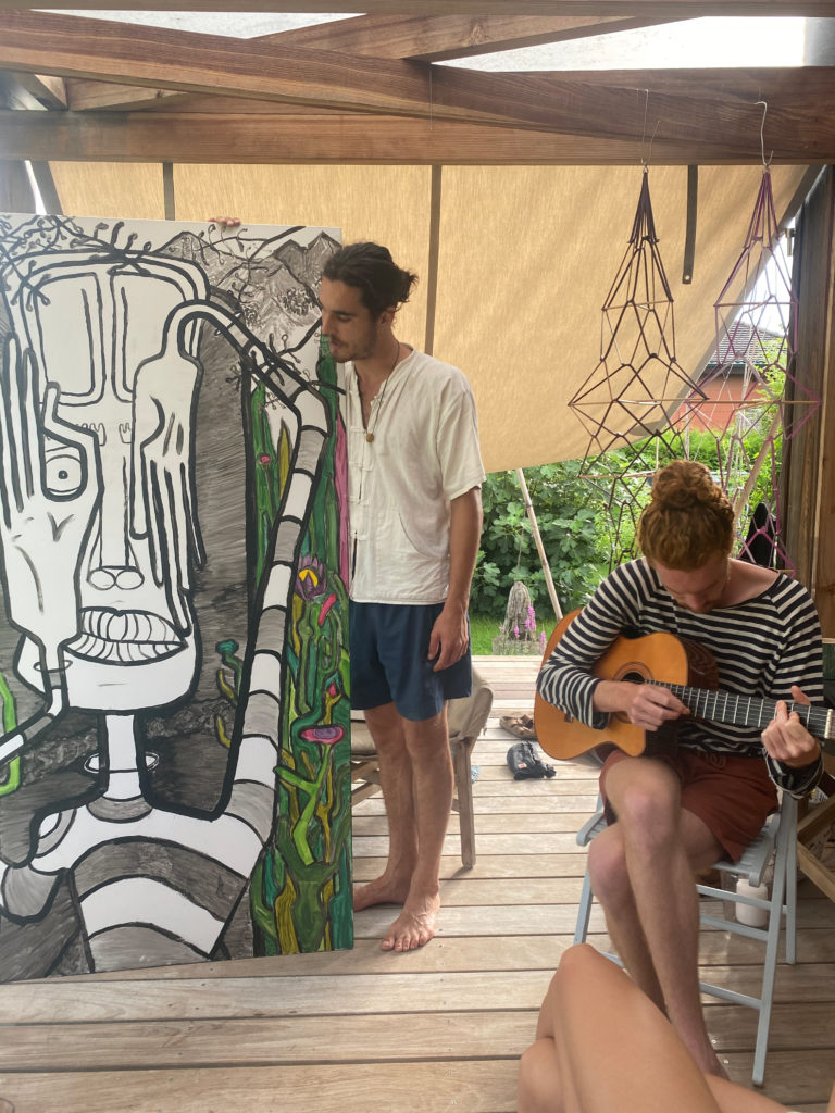 Over two years, I developed a transversal project combining painting, drawing, writing, scenography, performance, and lectures, nurtured by artistic residencies and personal research. The first year was marked by deep reflection on our lifestyle in overdeveloped Western societies and an exploration of sustainable and alternative ways of living, notably within the Longomaï network.
