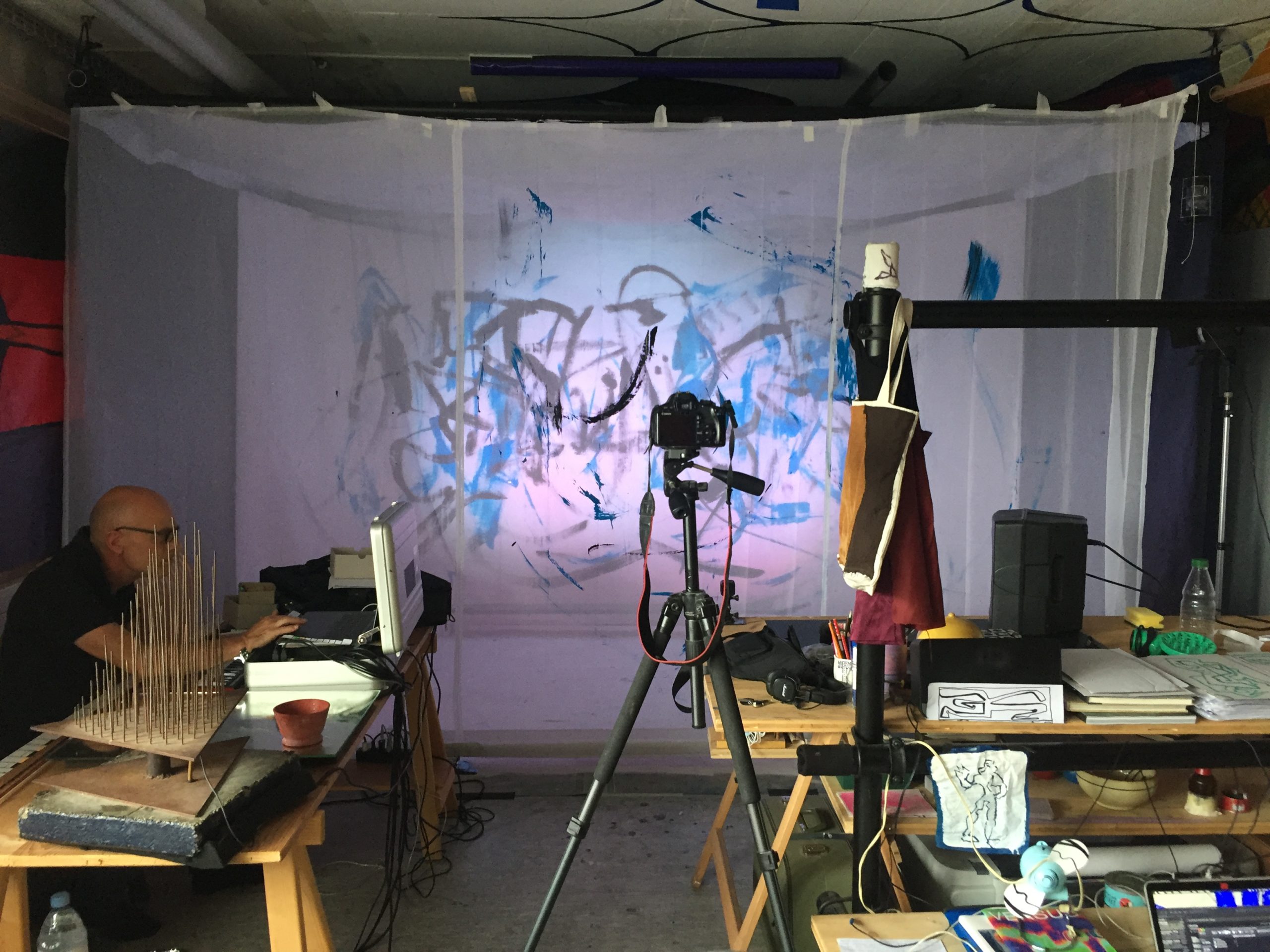 This performance unfolds in perfect harmony with the unique soundscape of Jean-Vincent Huguenin, created live through his innovative instruments.