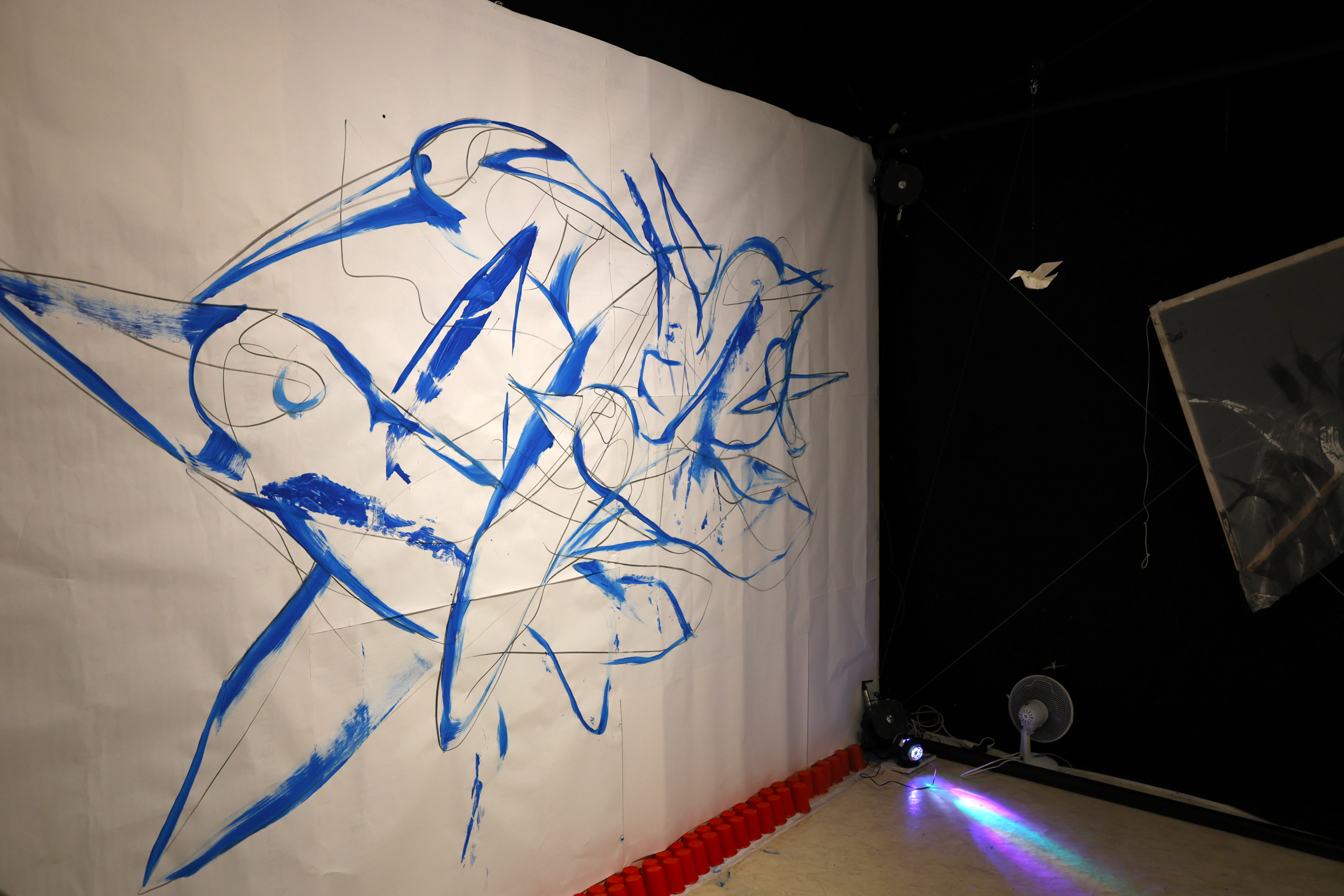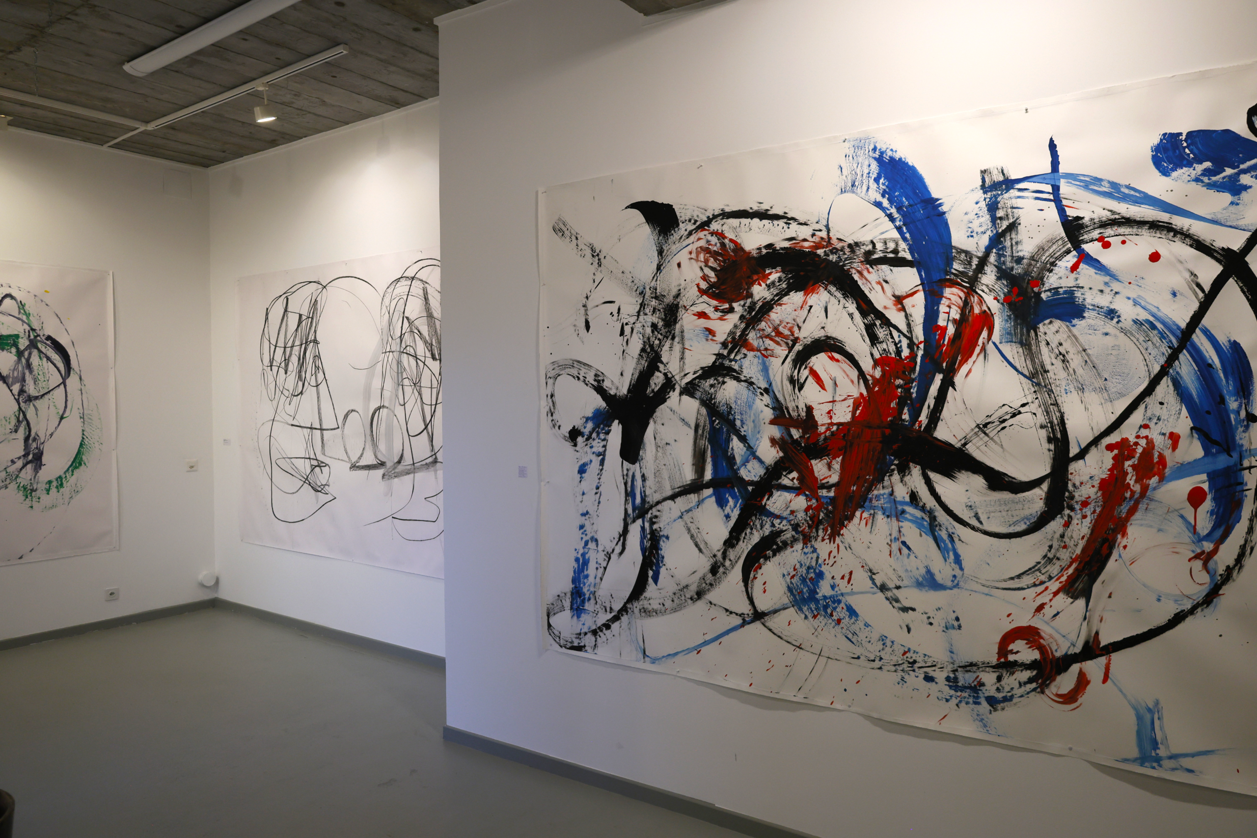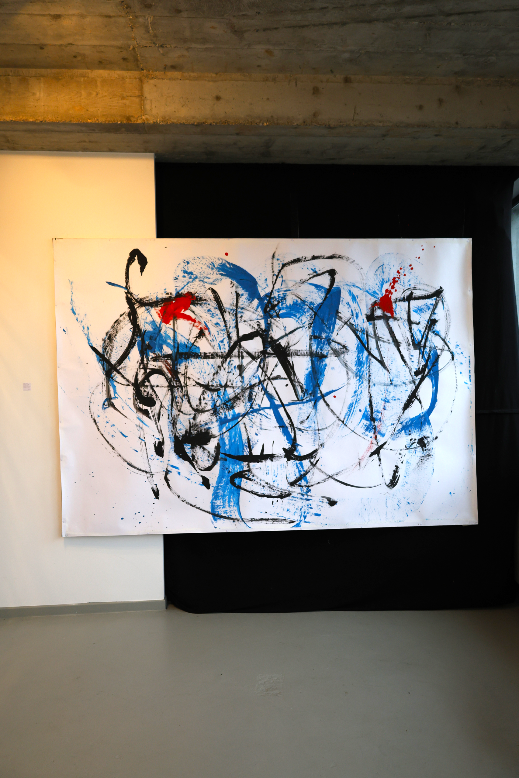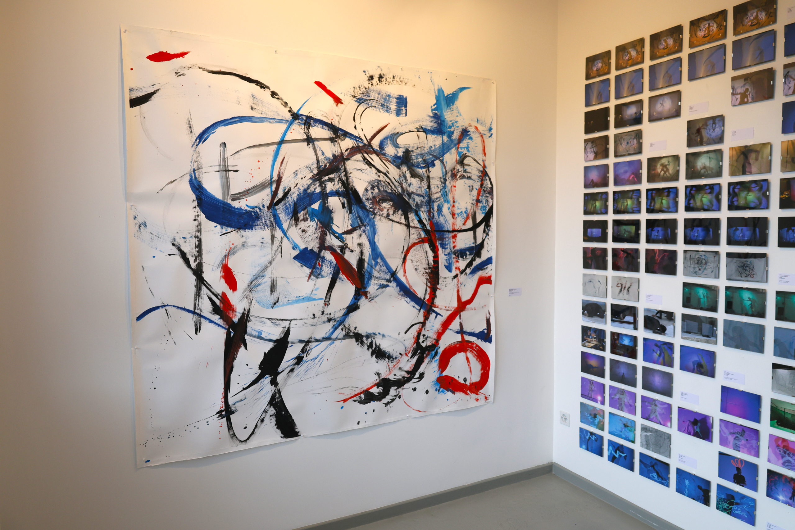 The exhibition, deployed in the introductory space welcoming this open residency, presents the series « Paintings That Dance ». This visual work highlights the « Lâchers pris » and various collaborations developed over the past five years, offering a retrospective through photographs and paintings. The event was inaugurated by a live performance during the vernissage, marking the beginning of this artistic adventure.