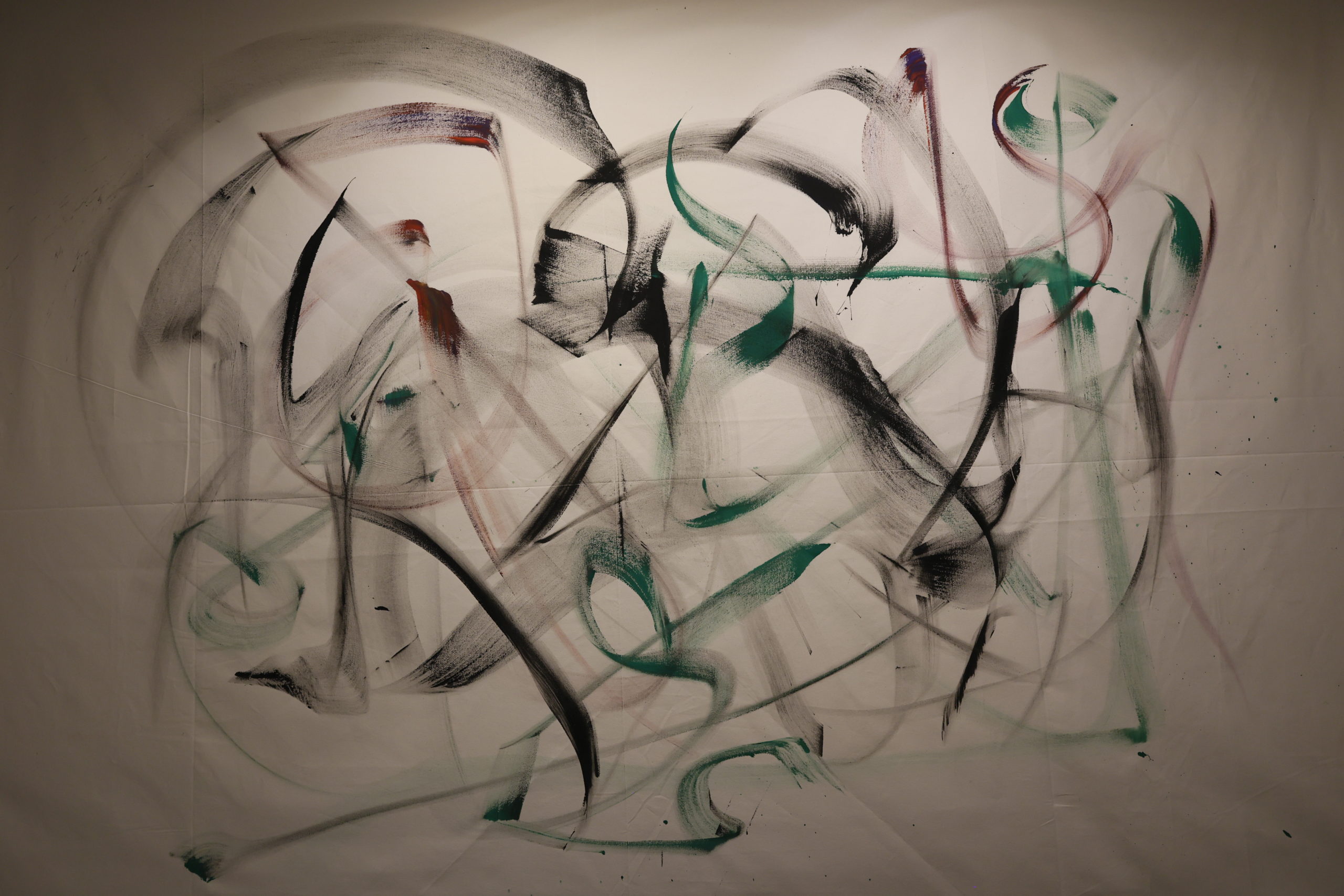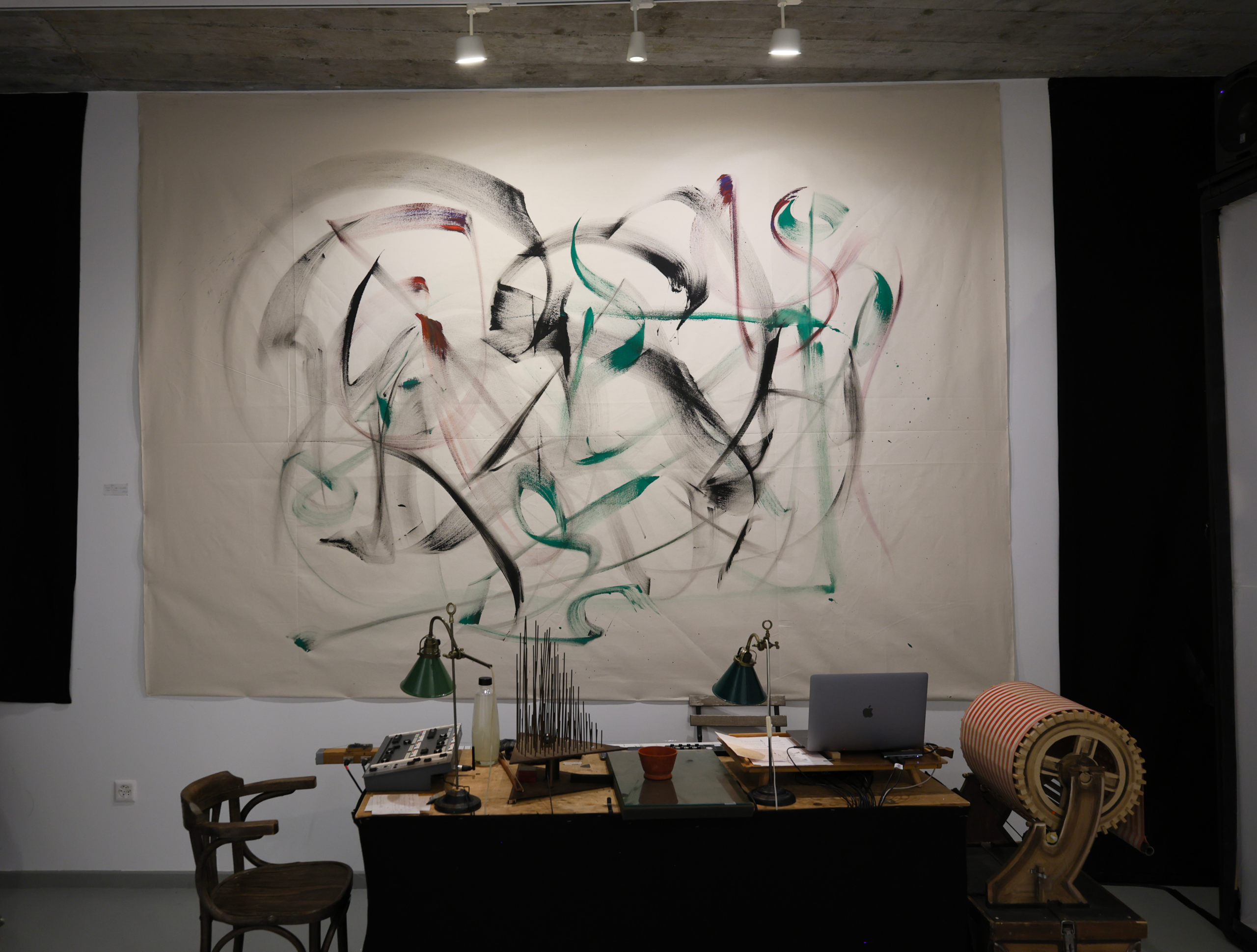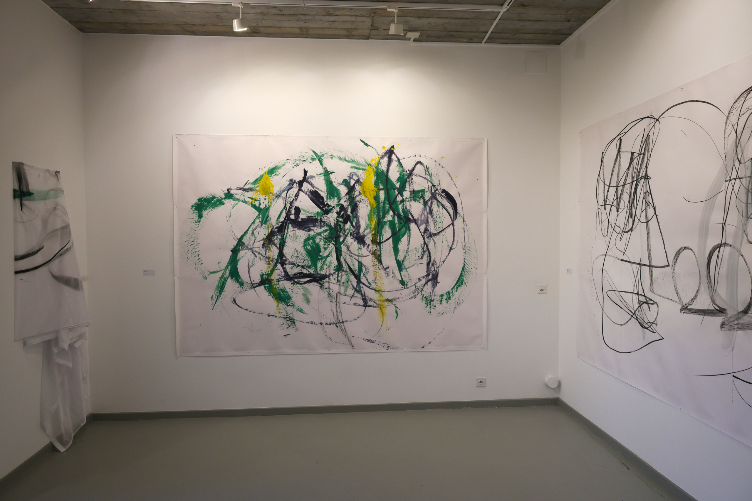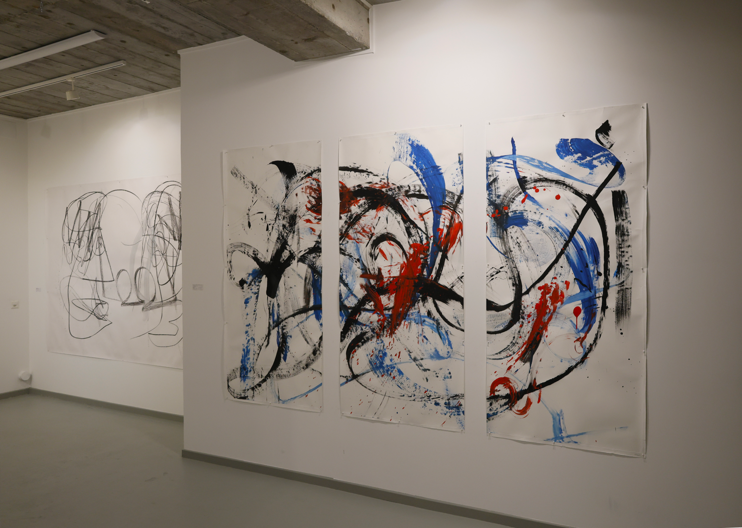 The exhibition, deployed in the introductory space welcoming this open residency, presents the series « Paintings That Dance ». This visual work highlights the « Lâchers pris » and various collaborations developed over the past five years, offering a retrospective through photographs and paintings. The event was inaugurated by a live performance during the vernissage, marking the beginning of this artistic adventure.