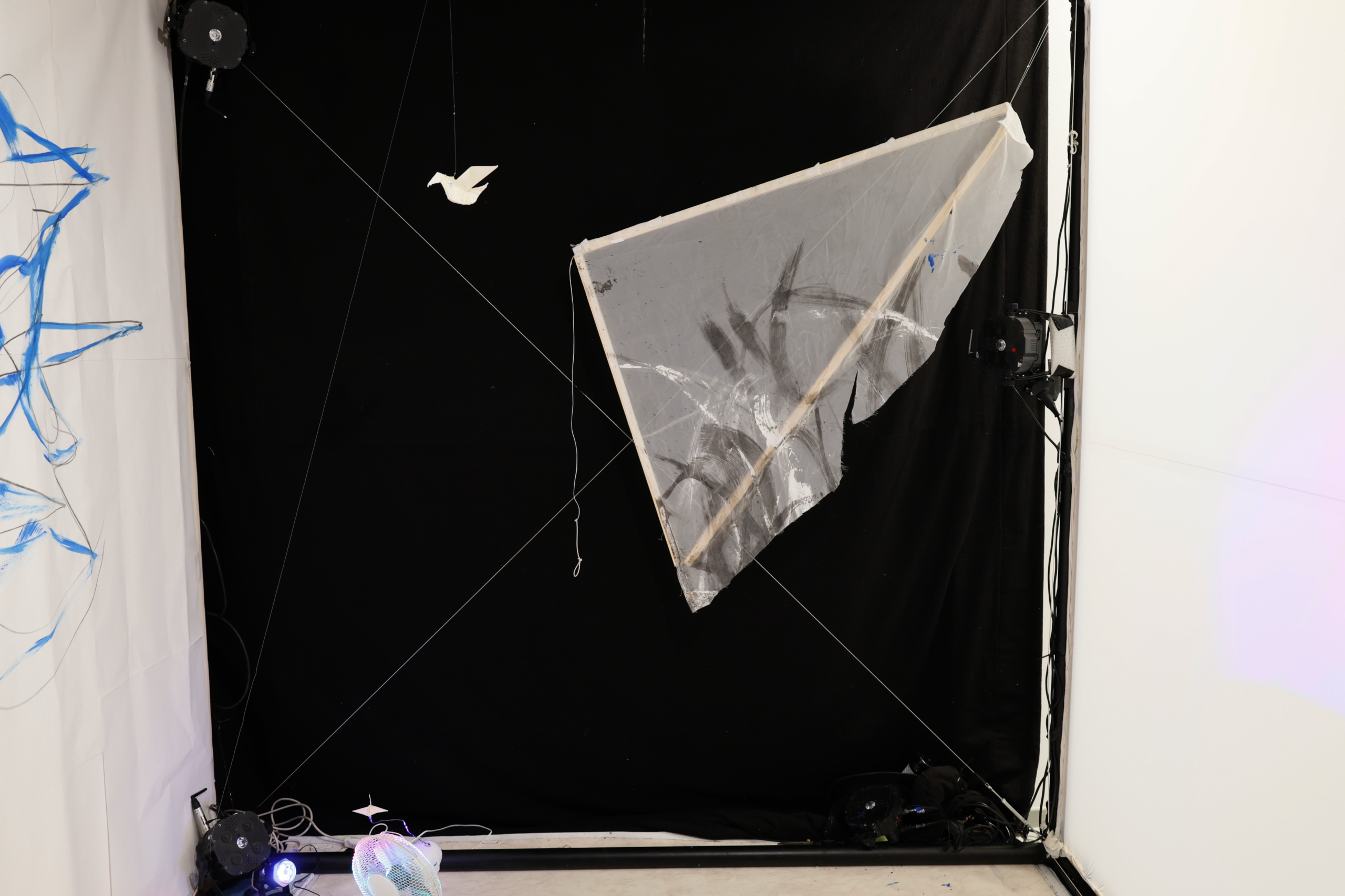 This residency gave birth to a new hybrid creation, exploring the frontier between human and bird through music, artistic installations, and the body in motion. Set within a chaotic world, the project questions and confronts spaces of cohabitation, inviting the public on a sensory, immersive, and conceptual journey at the heart of a singular and unbalanced relationship.