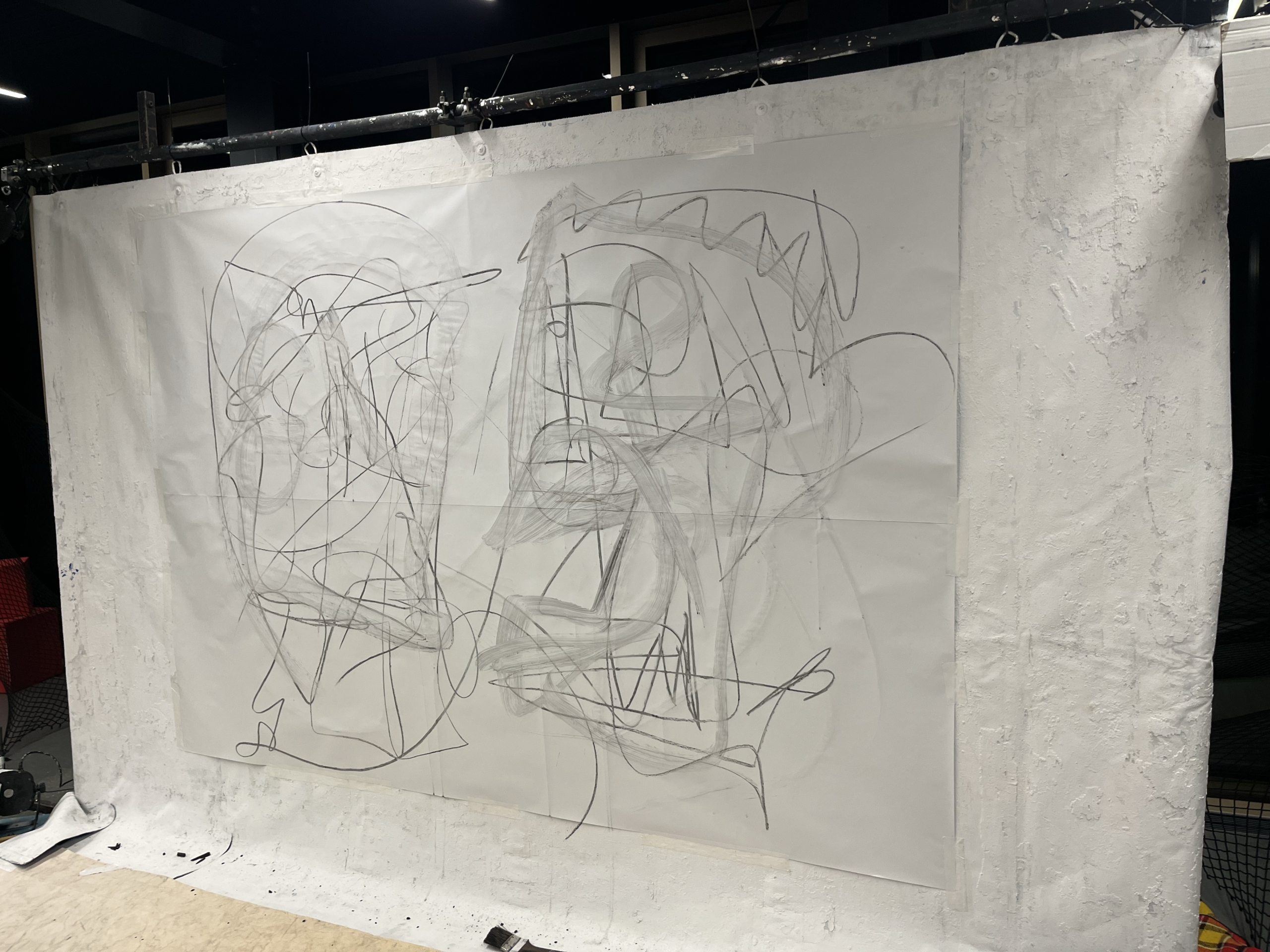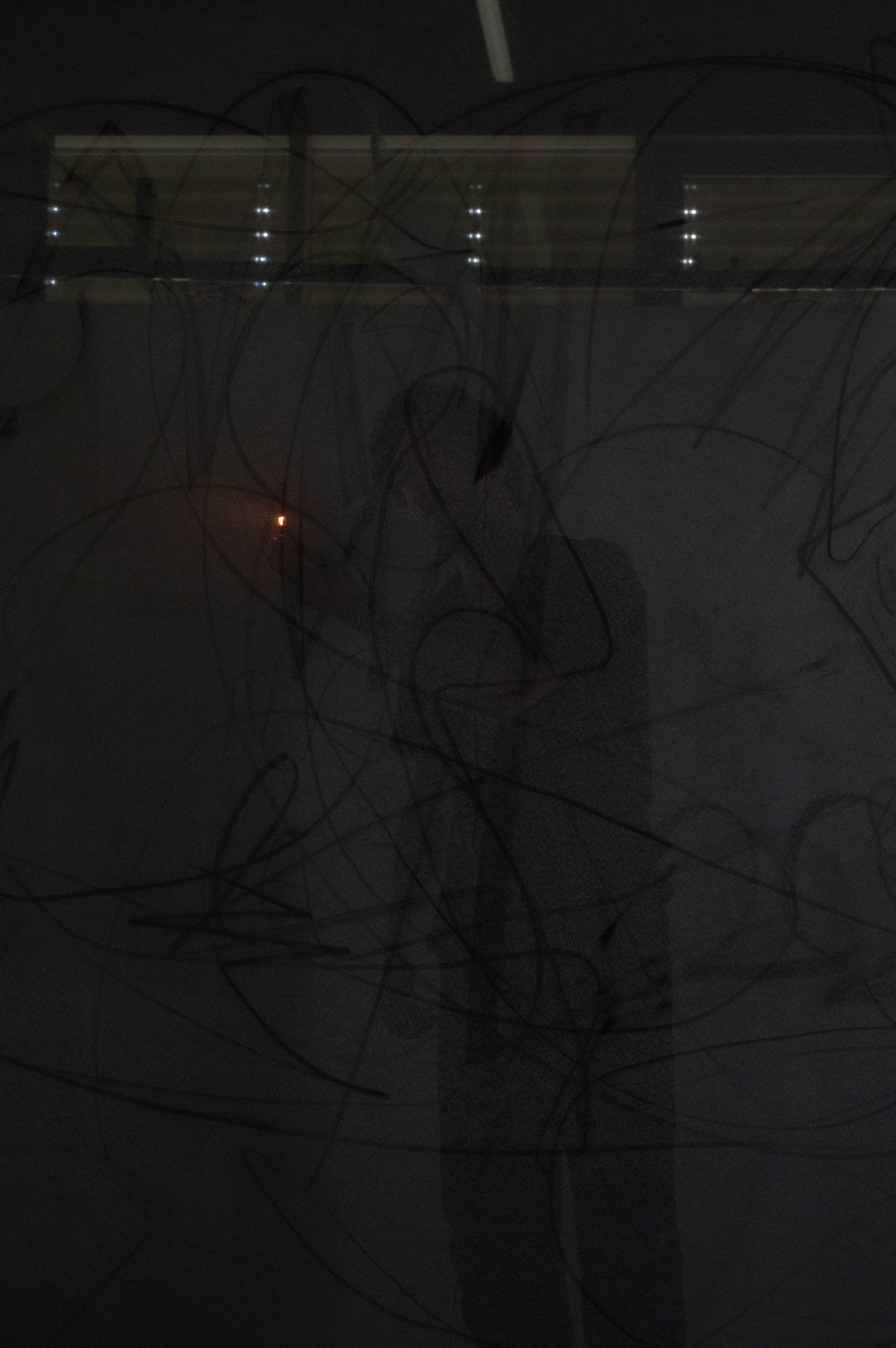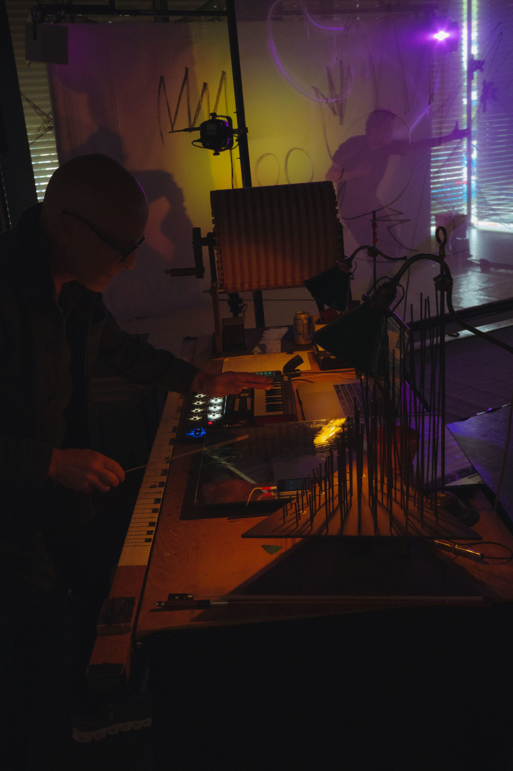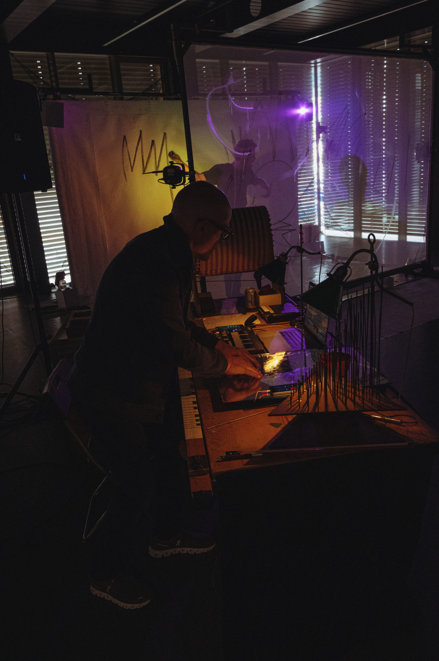 Within his installation, Arno enters into dialogue with matter, the body, and sound. Accompanied by musician and sound designer Jean20, he invites the audience into an immersive universe where movement, drawing, and music interact in real time, giving rise to a unique and evolving world.