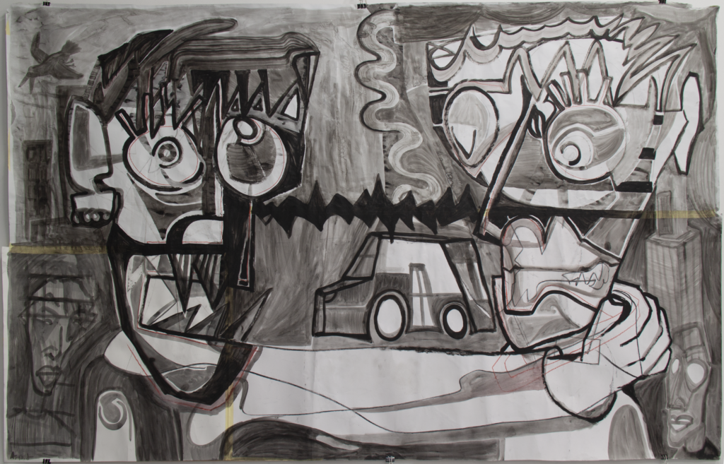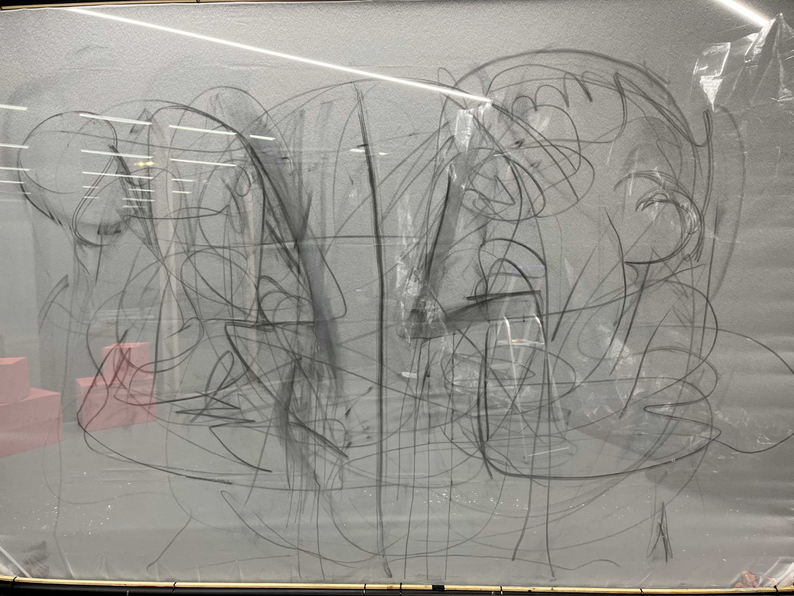 The performance unfolds as a narrative: a dialogue between two faces, a conversation that gradually tightens, escalates, and transforms into an inner confrontation. Through danced movement, the raw marks of charcoal, and an organic sound composition, Arno revisits a deeply personal story, reviving and deconstructing it through his artistic practices.