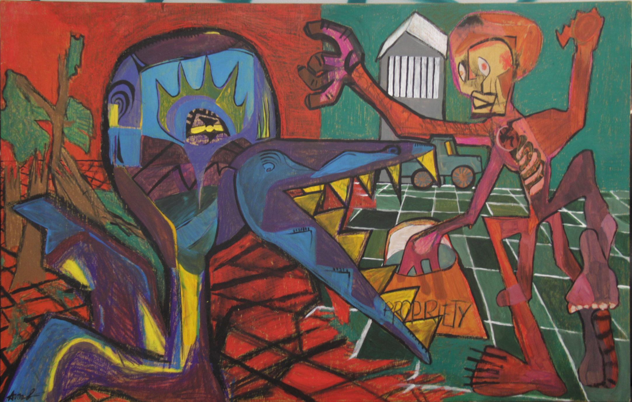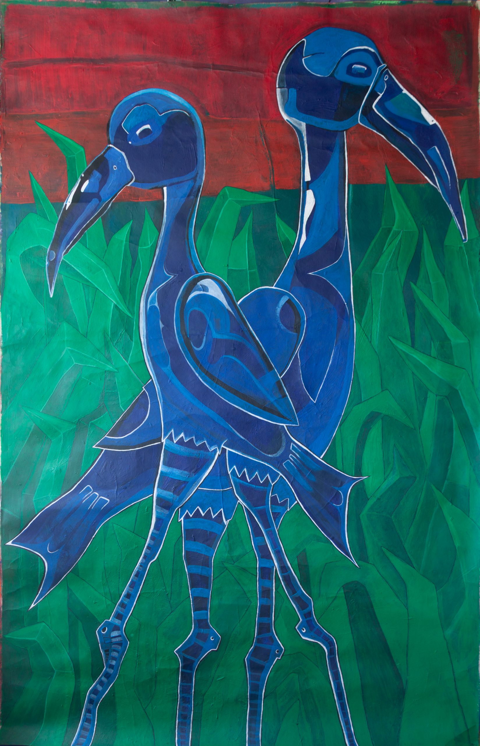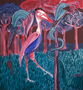 This project explores the complex, sometimes conflicting relationship humans have with natural environments. Through a palette dominated by red, green, and blue, each painting reflects our tensions and contradictions, as well as our hopes. Red, the color of blood and vitality, dialogues with green, symbolizing a nature that we shape or jeopardize. Blue appears as a call for wisdom and calm, a promise of harmony regained with our planet.